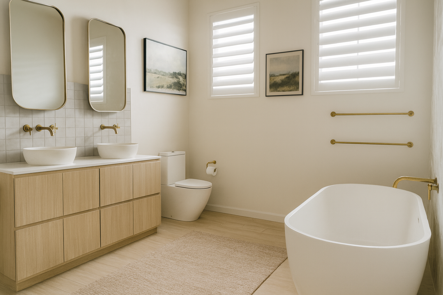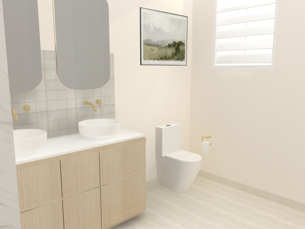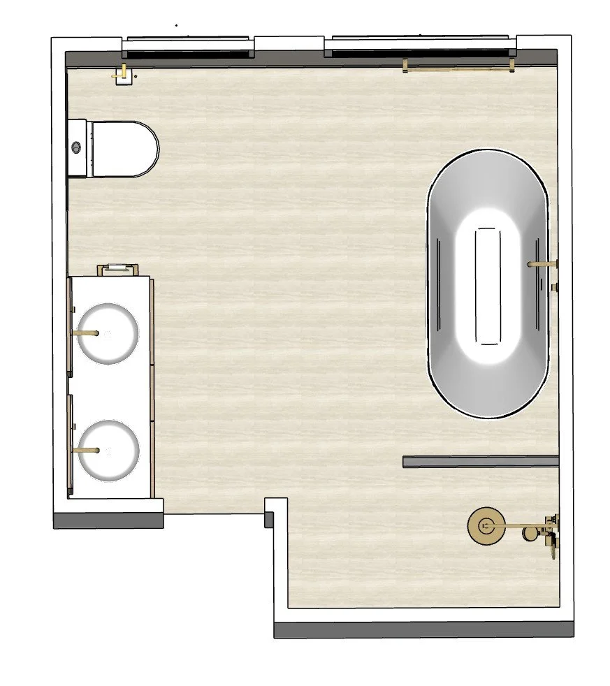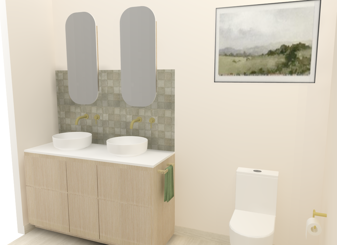Wendy and Theo came to me for a bathroom redesign and redecorate. Together we came up with a colour scheme that evoked a spa-like feeling and chose materials to compliment. Focusing on travertine and light timber, I set these clients up with sample boards, FF&E schedule, a new floor plan and renders for them to work from. Away they went and they couldn’t be happier with the final product. A bathroom that attracts more natural light, feels open and spacious and all in a calming, tonal colour pallet.